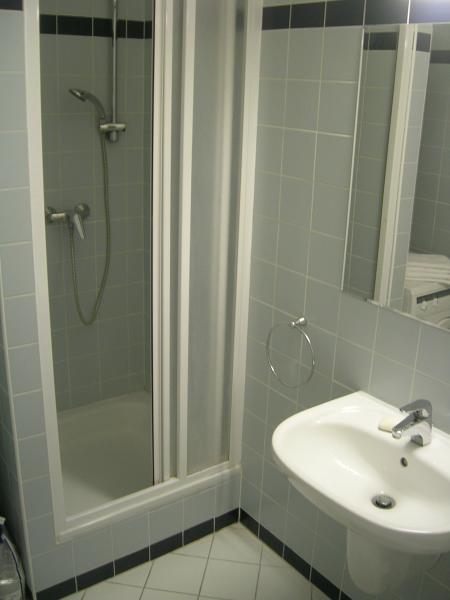Bathroom downstairs with shower & washing machine