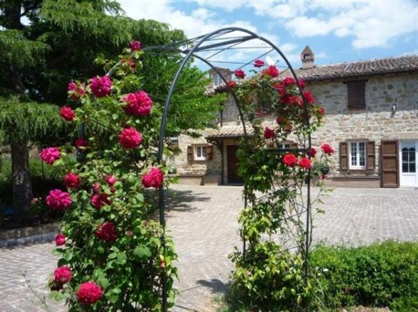 Atop a green hill, only 15 minutes from the beach and close to the characteristic medieval villages of Marche, stands a farmhouse tastefully converted into a delightful Country House. The surrounding landscape, lush with vineyards, orchards and olive gro