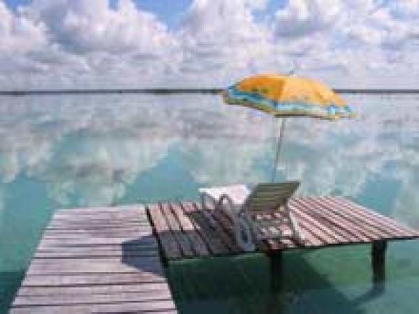 western shore of beautiful Laguna Bacalar within the town of Bacalar.