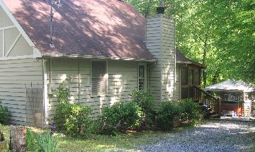 This chalet is located in Walnut Mountain Resort, just minutes from the Apple Festival of Ellijay, Georgia. The outdoor viewing deck has a four person hot tub, screened porch, gas grill, and a table with chairs for relaxation and taking in the view. This