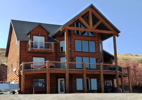 Situated in a peaceful and green setting, Harbor Hights Cabin, a Garden City vacation cabin by owner is an ideal waterfront hideaway with family or friends. This beautiful wood cabin offers spectacular views of lake and mountains beyond. Our spacious 4 b